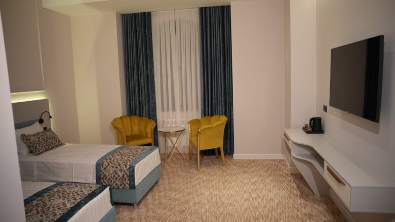 Featuring two single beds, a work area, and all essential amenities, the twin room is ideal for friends or colleagues.