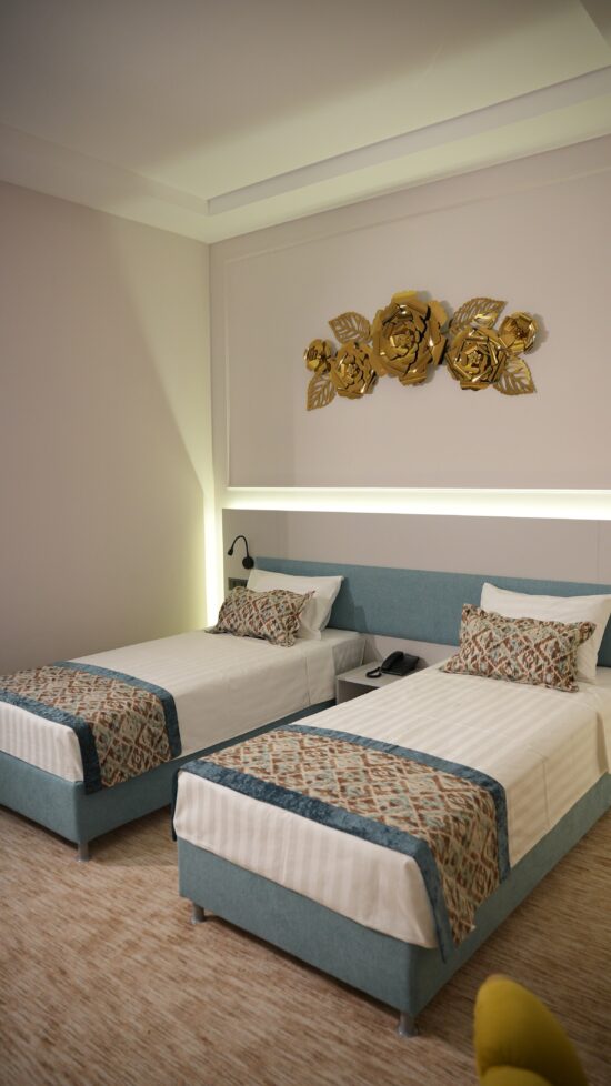 Nestled amid the city’s vibrant streets and historic landmarks, our hotel offers a serene retreat for business travelers and vacationers alike. From the moment you arrive, you’ll experience warm, genuine service inspired by centuries of Central Asian tradition—whether you’re enjoying a freshly brewed cup of chai in our lobby, or unwinding on your private balcony overlooking the city skyline.